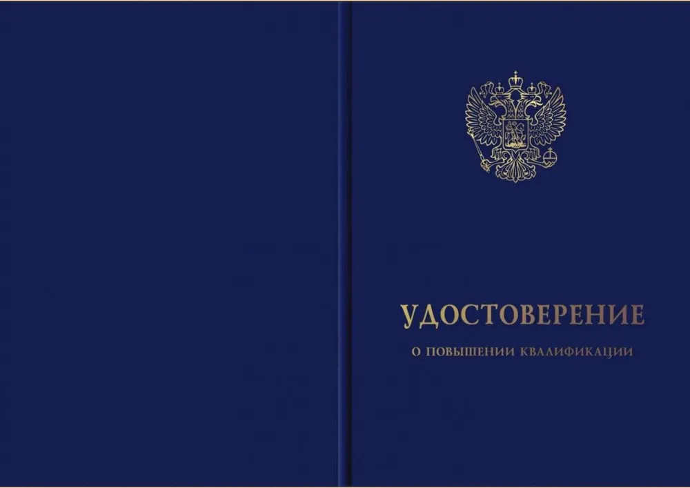 Корочка (обложка) синего (удостоверение) или бордового цвета (диплом).